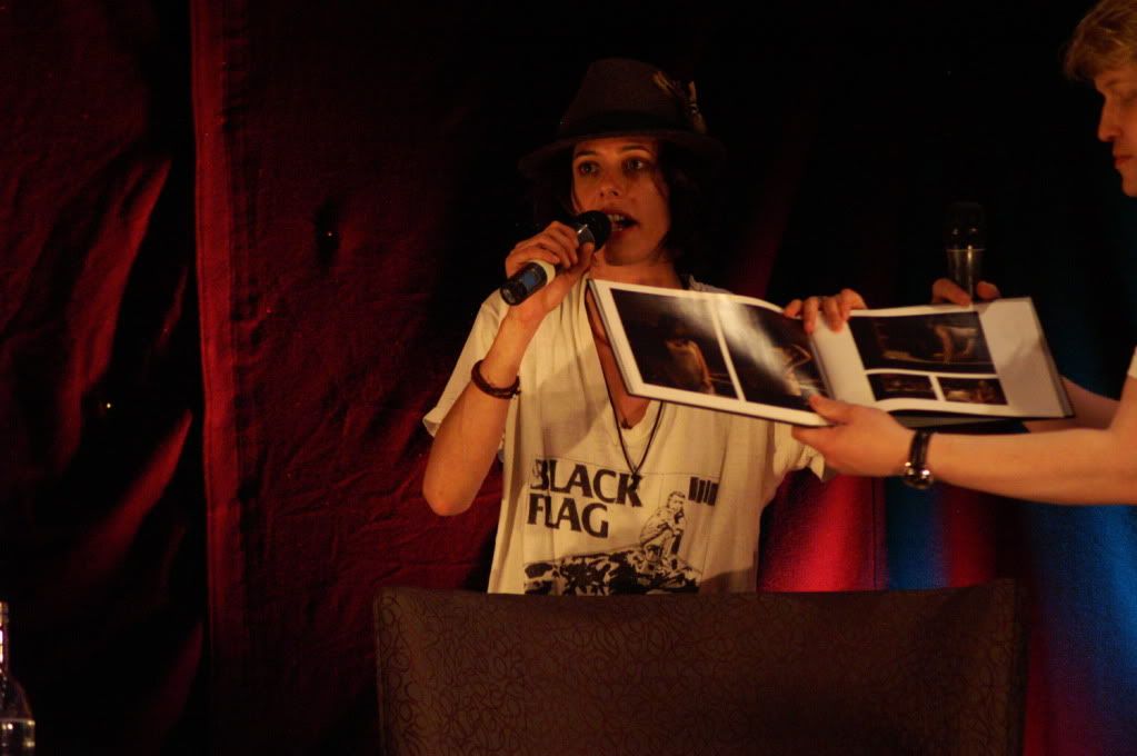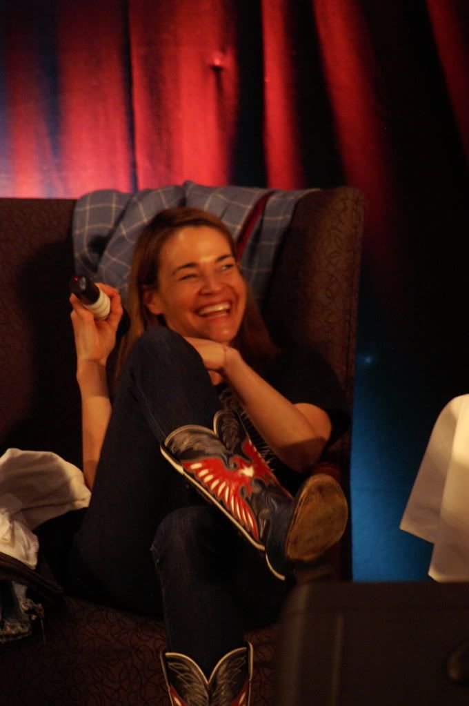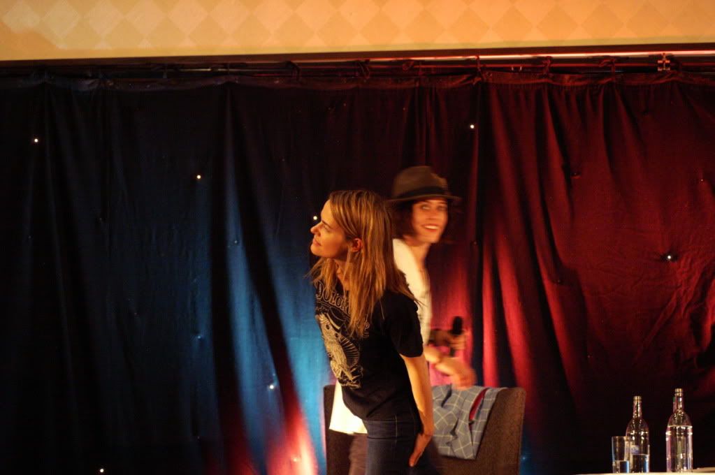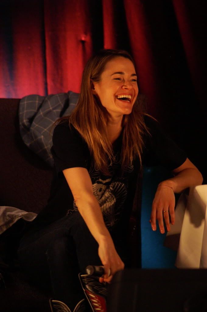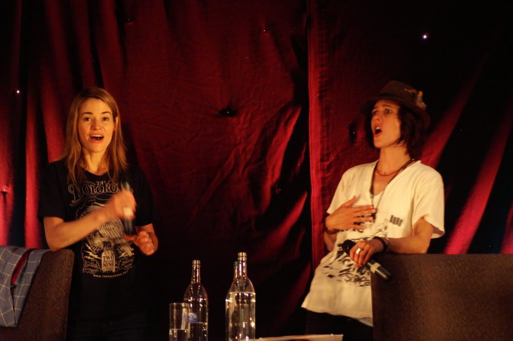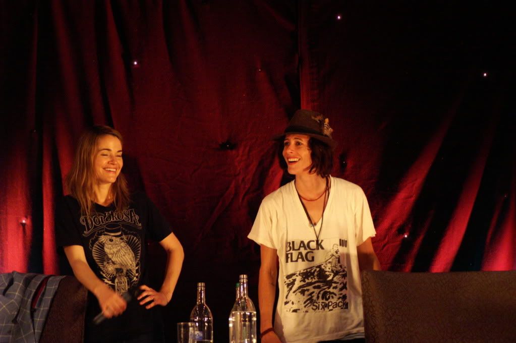 原來是這樣子...難怪說她butch的都是 鐵粉,那種追隨她十幾年,每次gig只要在美國境內就去追的那種,估計相處都像friends一樣了。所以動作就比較 隨意了,甚至還會打打鬧鬧(YY的)...那些人討論起leisha都會說,其實leisha很butch...囧死...我說怎麼感覺不出來呢...忘記她還有害羞的一面了...