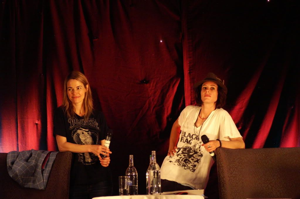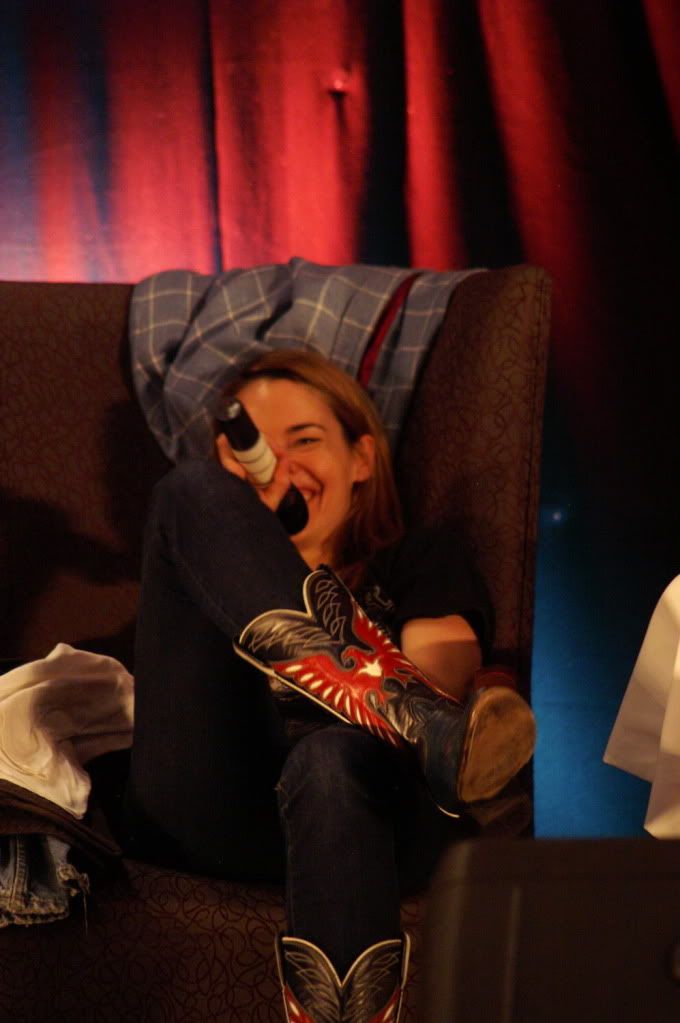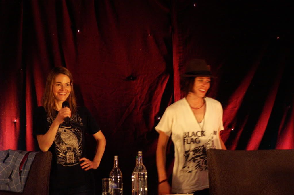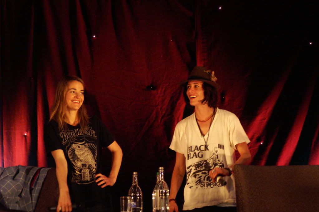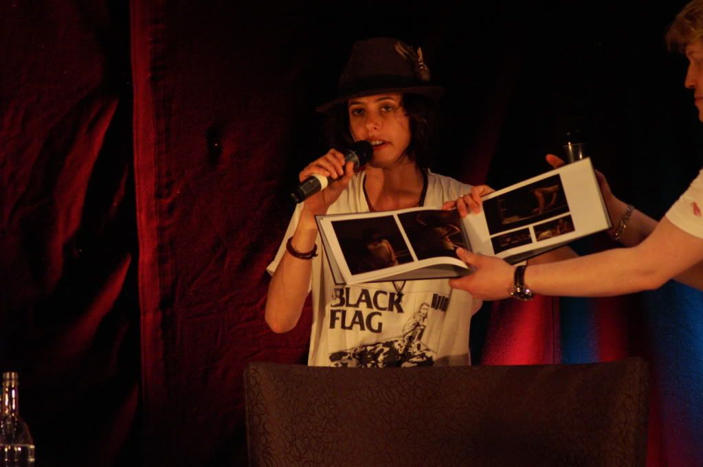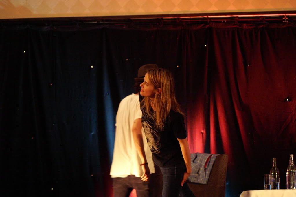 原來是這樣子...難怪說她butch的都是 鐵粉,那種追隨她十幾年,每次gig只要在美國境內就去追的那種,估計相處都像friends一樣了。所以動作就比較 隨意了,甚至還會打打鬧鬧(YY的)...那些人討論起leisha都會說,其實leisha很butch...囧死...我說怎麼感覺不出來呢...忘記她還有害羞的一面了...
